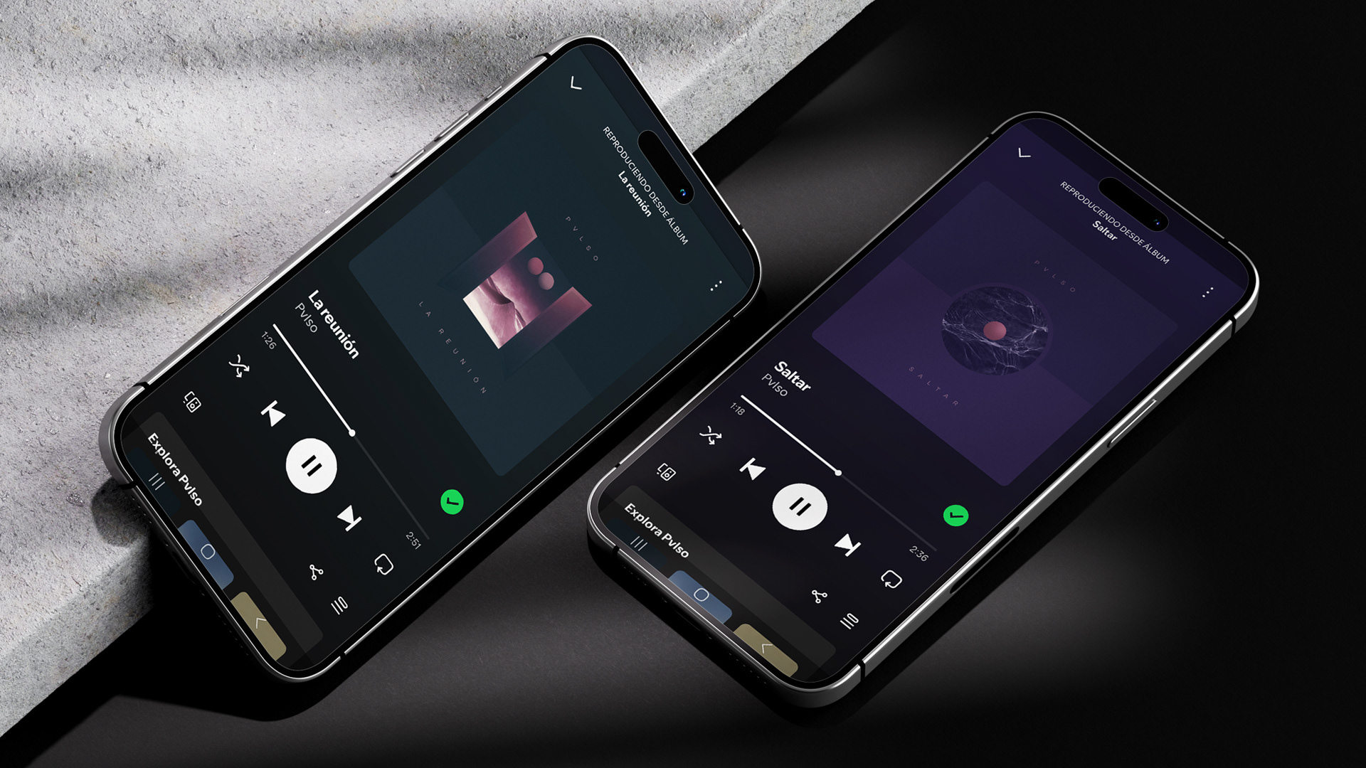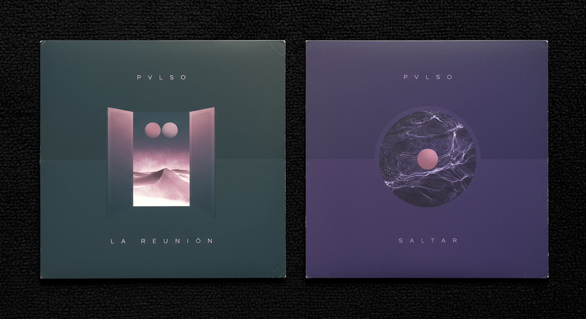 Estas portadas fueron diseñadas para dos singles de la banda Pvlso, lanzados con muy poco tiempo de diferencia, por lo que están concebidas como parte de un mismo sistema visual.